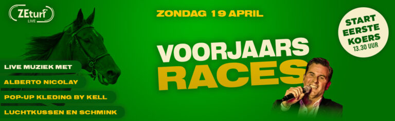 Voorjaarsraces. Minimaal acht volle koersen, twee minidraverijen en kinderentertainment door het Schminktheater of jump op het springkussen. Het frisse team van de huiscateraar Food for the Mood, vult deze koersdag met smaak en genot in.